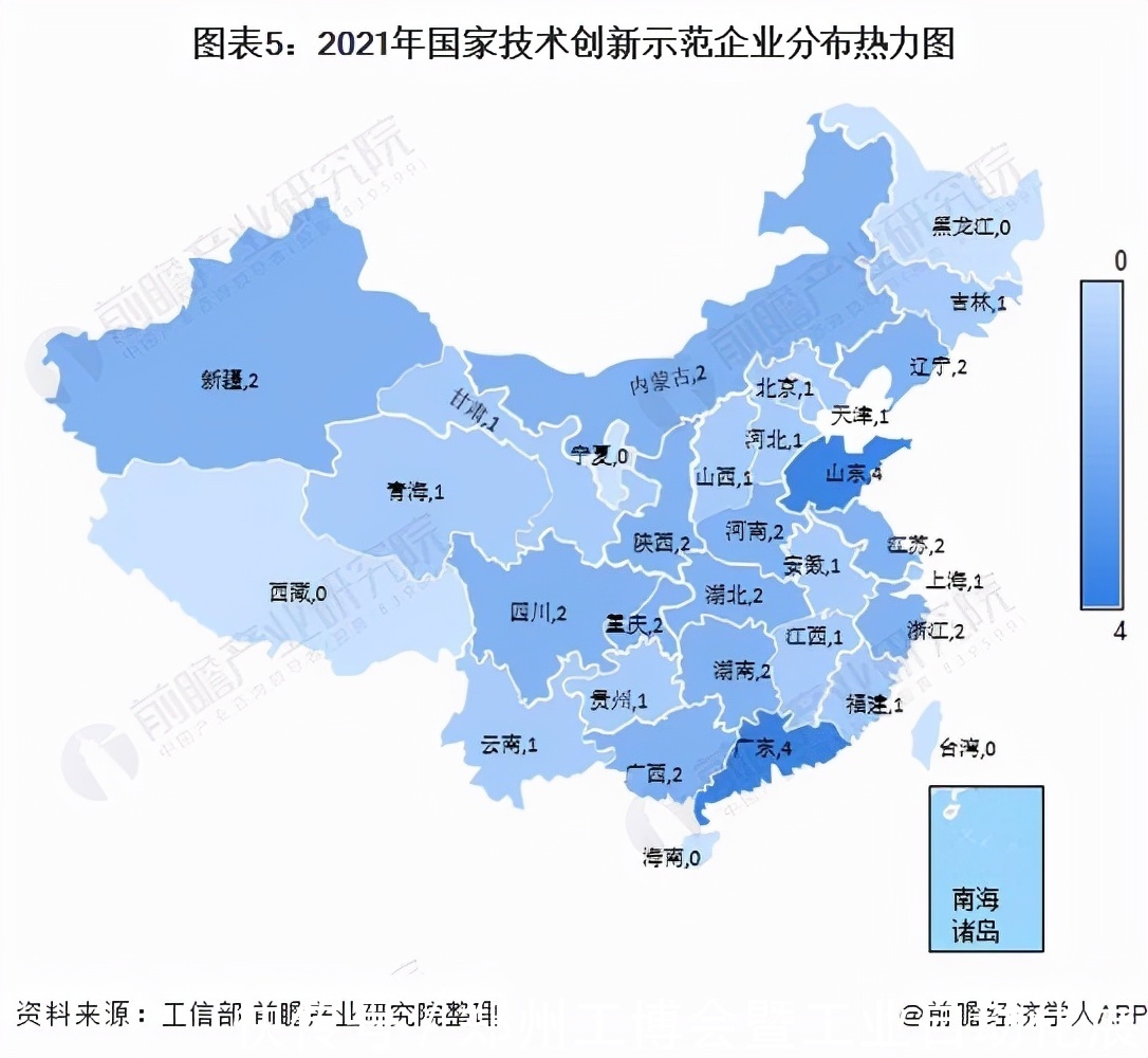 2021年11月,工信部发布“2021年国家技术创新示范企业名单”,其中有北京航星机器制造有限公司等58家企业入选2021年国家技术创新示范企业,58家企业分布在全国26个省/直辖市/自治区,其中广东、山东等地的入选企业数量相对较多。